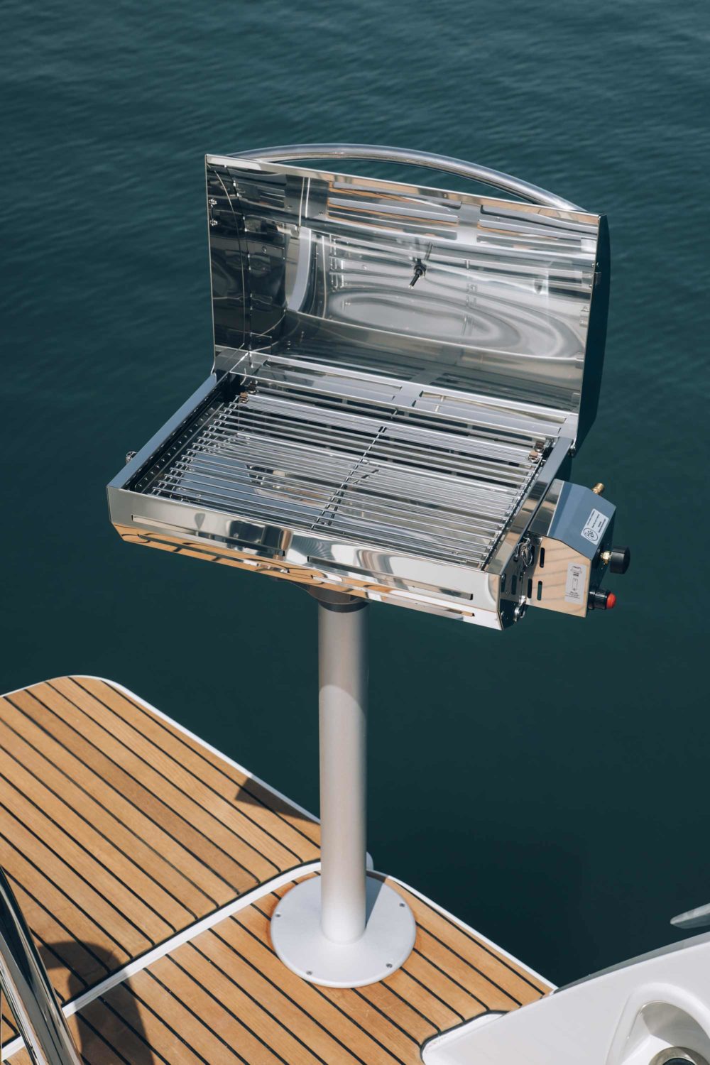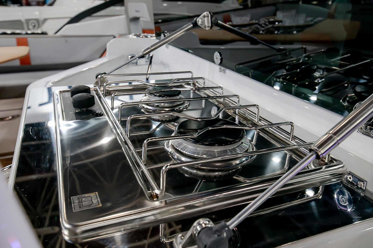 The BENETEAU Flyer 10 elevates the dayboat concept into a true live-aboard powerboat. A large swim platform runs flush into the cockpit leading into a full galley with optional gas or electric barbecue, and fridge. The U-shaped cockpit is a perfect place to gather around a large table, which converts into an additional sun pad area. Starboard side, the helm station features two pilot bolster seats, Garmin, and Fusion audio electronics. Open the port side windshield for easy access to the bow sun lounge. Below deck, two double berths divided among a salon cabin and a mid-cabin with a head and separate shower.