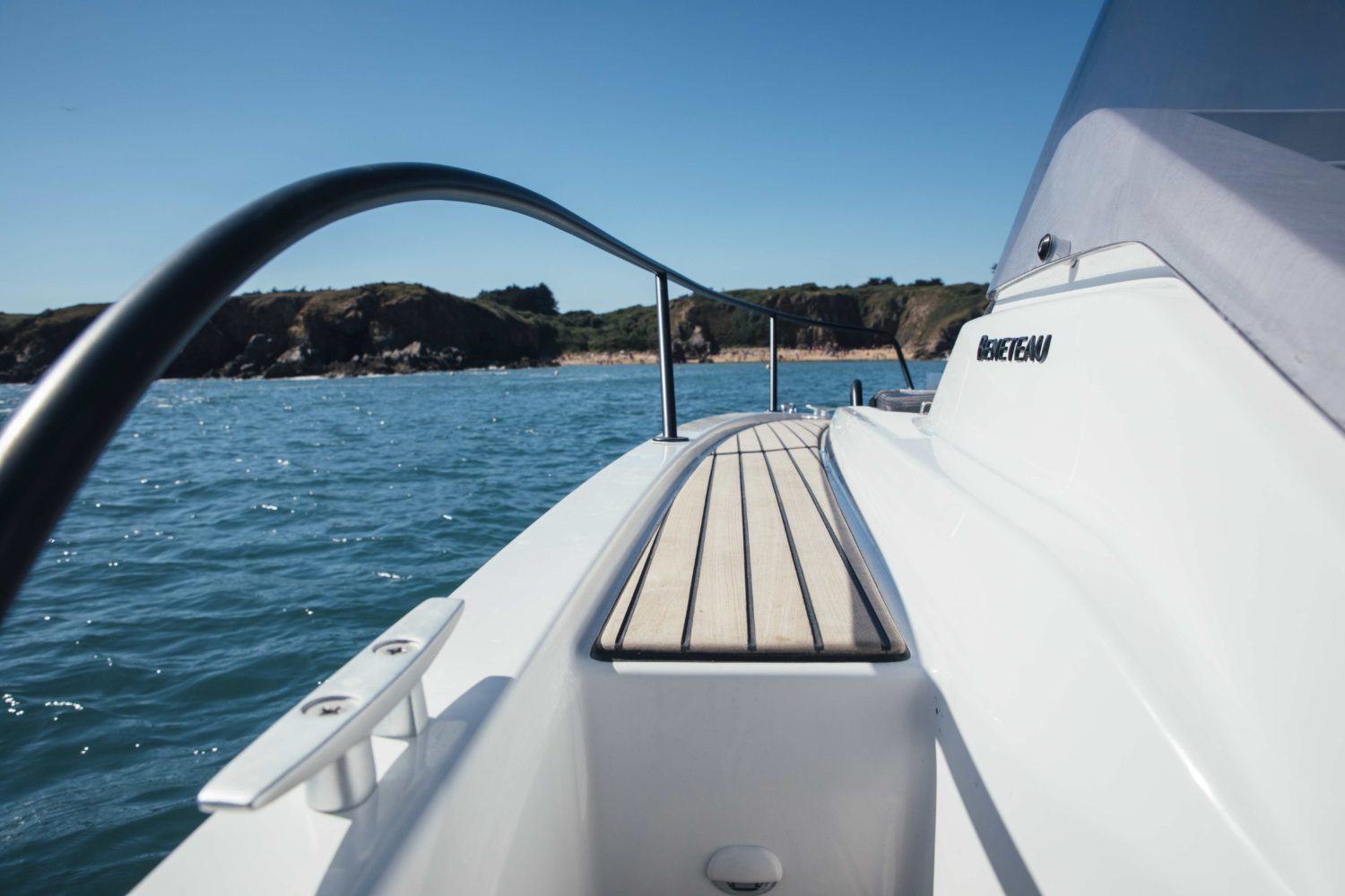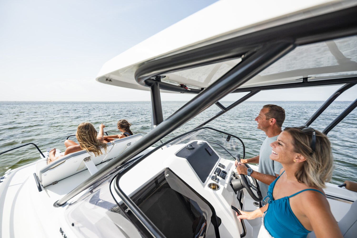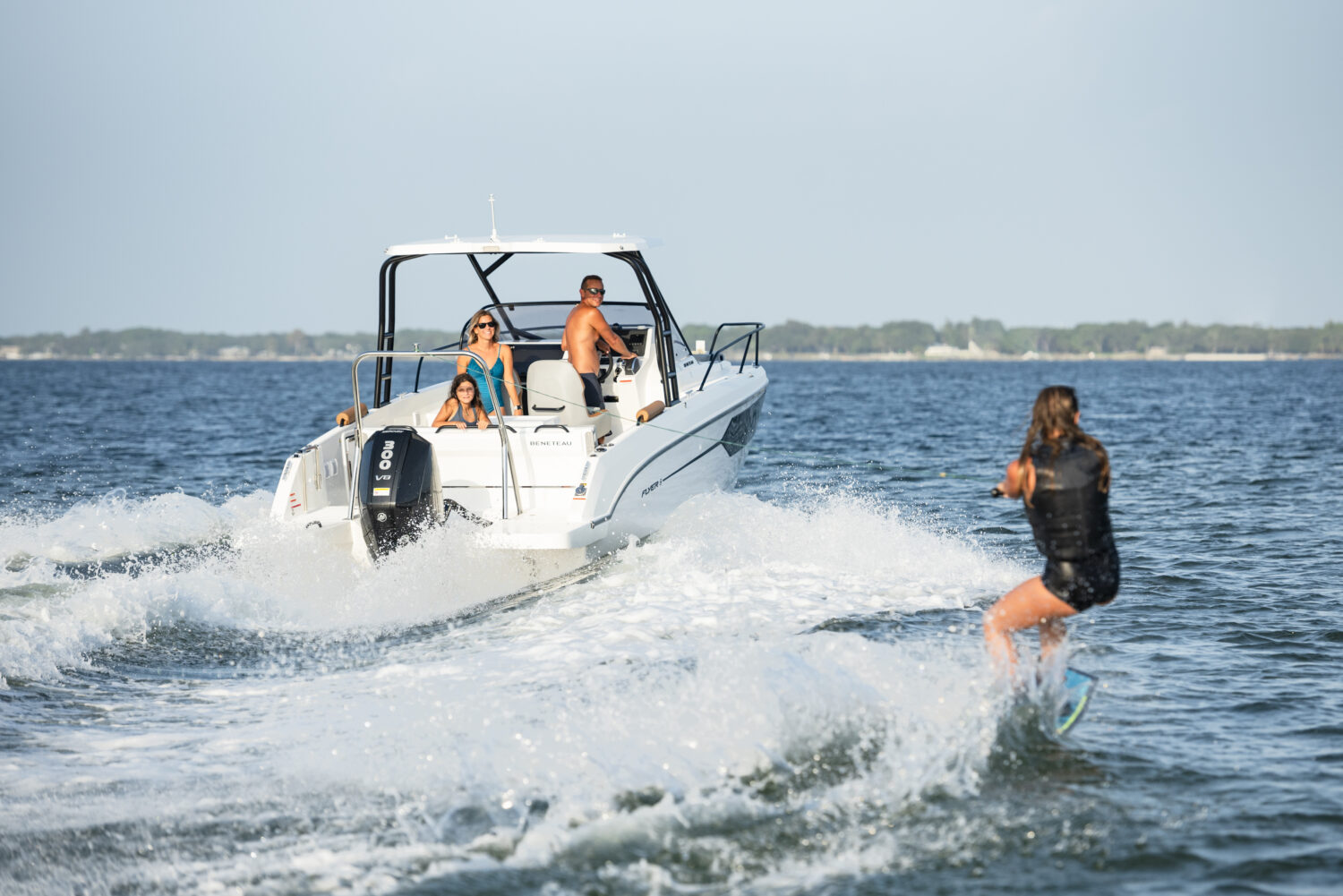 The BENETEAU Flyer 8 SUNdeck is perfect for a weekend getaway and combines comfort, open space and flexibility. Ideal for all-day boating, she’s ready for water sports, fishing trips, sunbathing or picnicking on board, and accommodations to spend a few more days on the water. Access to the forward sun pad utilizing port and starboard walkways. A double-berth cabin down below offers an incredible headroom along with a separate head and a small galley.