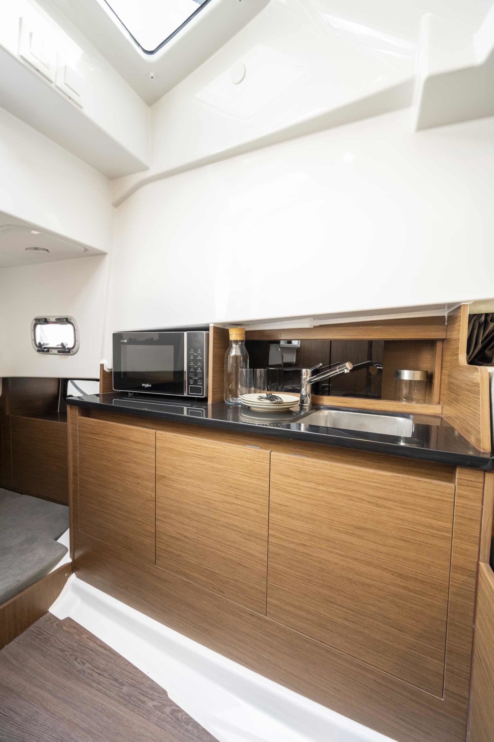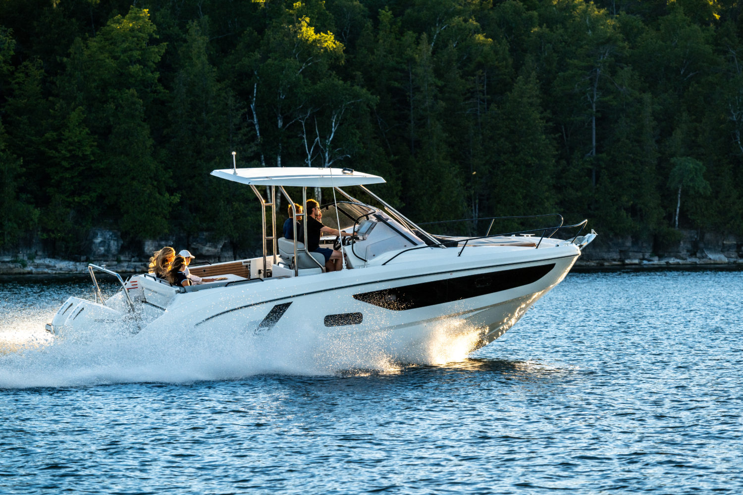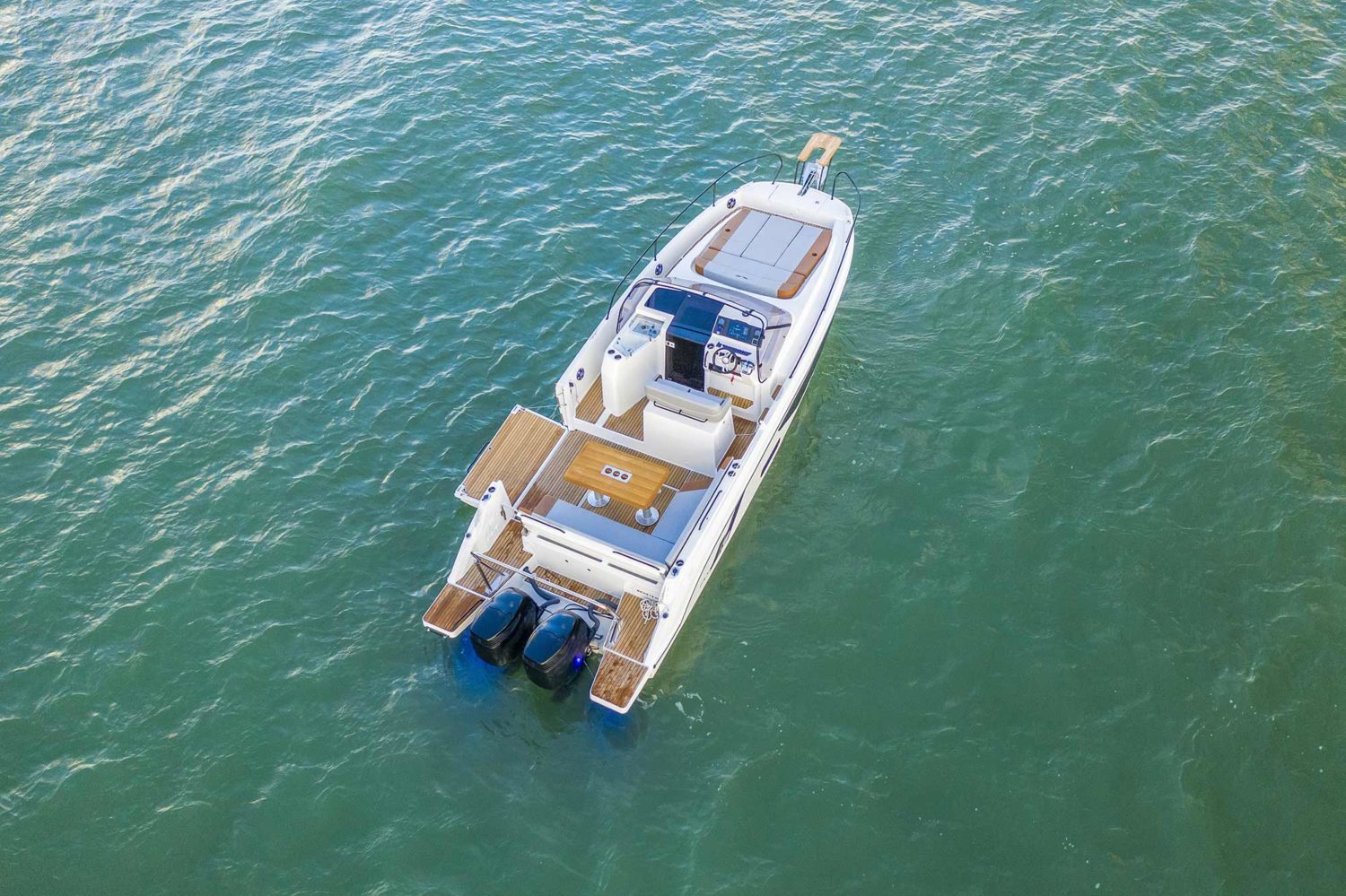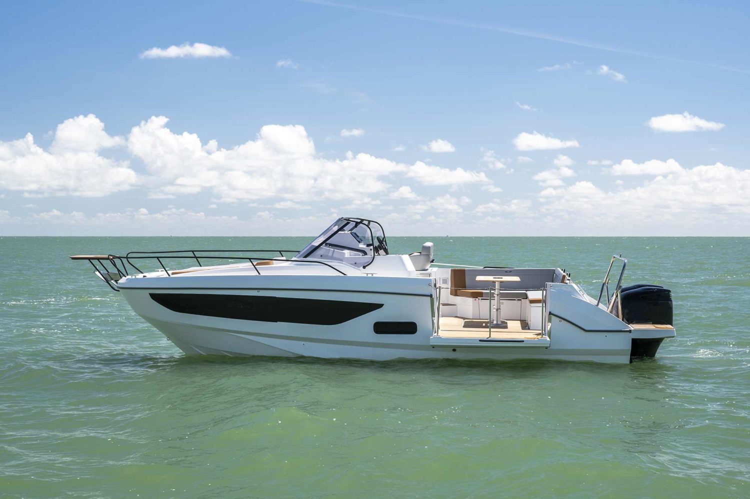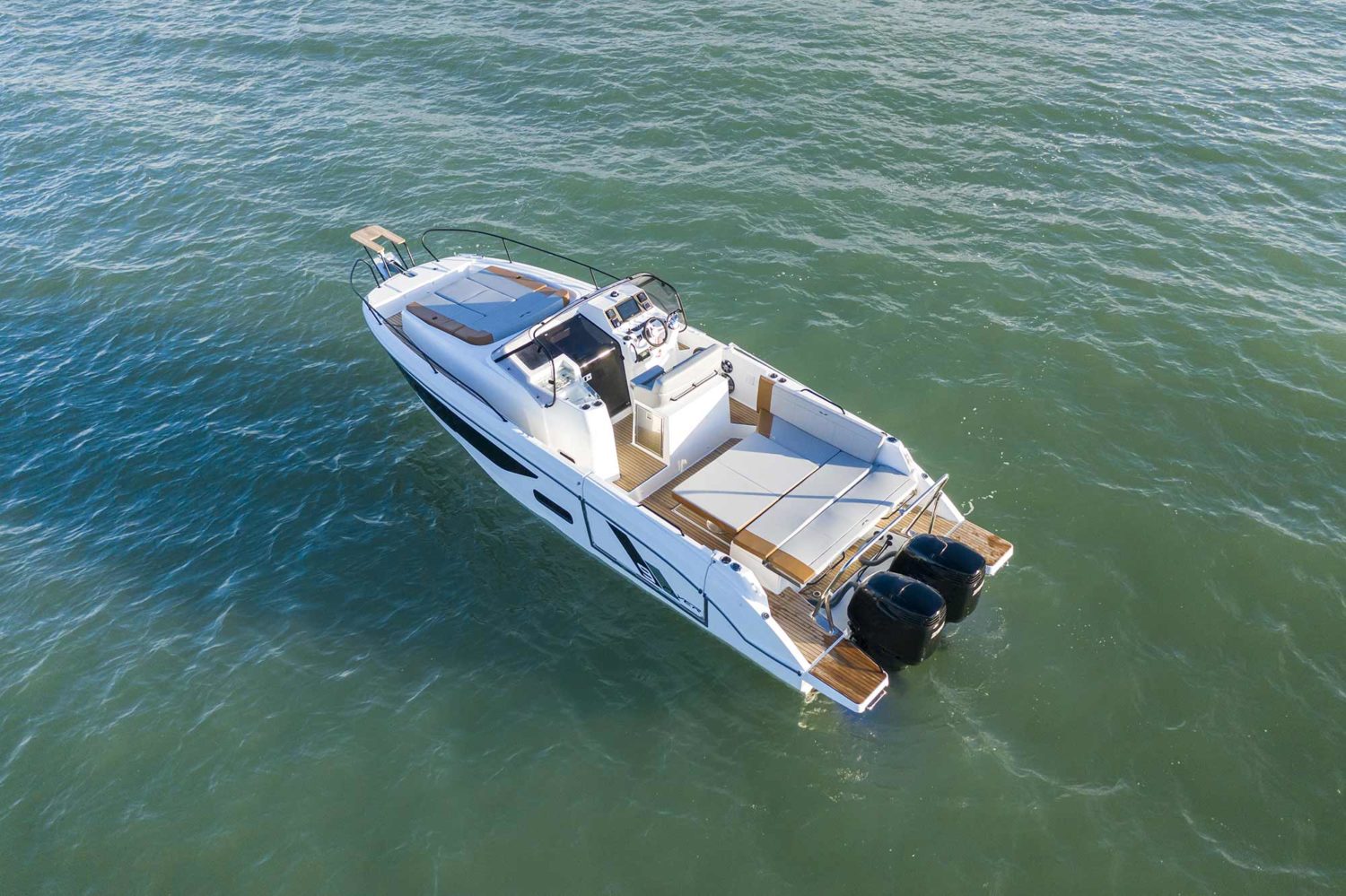 The BENETEAU Flyer 9 SUNdeck is perfect for all nautical adventures. The spacious Flyer 9 SUNdeck features a port-side opening swim platform and utilizes a smart walk-around concept providing easy access to the front deck. Adjacent to the helm, an exterior galley allows you to remain connected to the L-shaped salon. Below deck, four berths and a head with a separate shower provide comfortable sleeping accommodations for up to four people with optional air conditioning to ensure days away are comfortable.