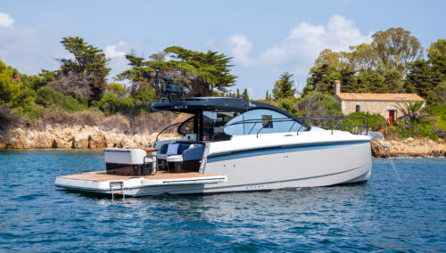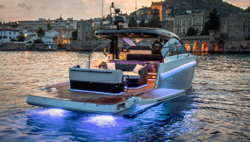 With twin Mercury Verado 400hp or Yanmar 320hp engines (as base engine options) the Gran Turismo 40 delivers thrilling speeds managed from a perfectly designed helm station. Sophisticated finishes, signature hull light blades, and a seamless indoor/outdoor flow set an entirely new standard in terms of what an express cruiser should offer.