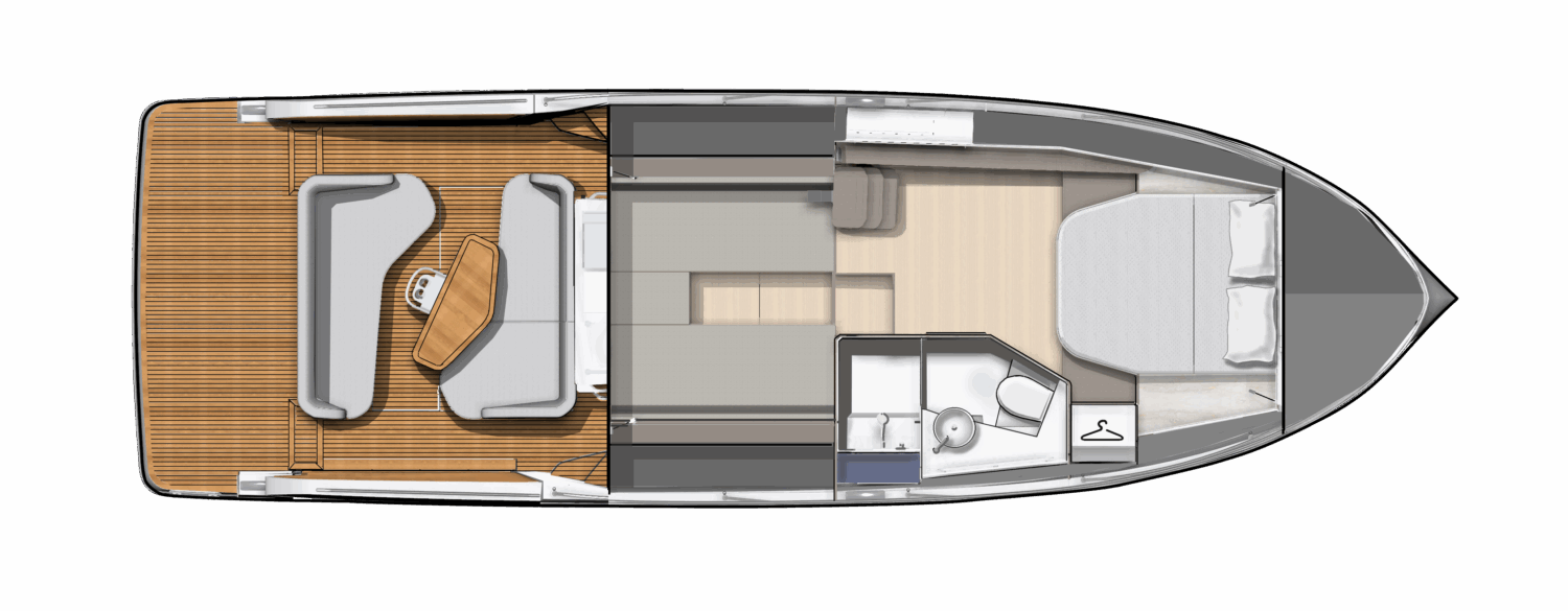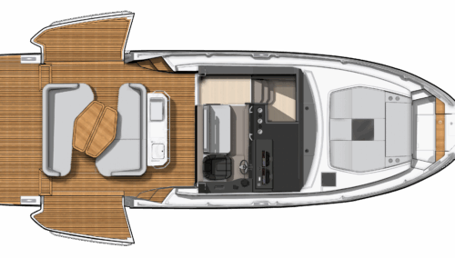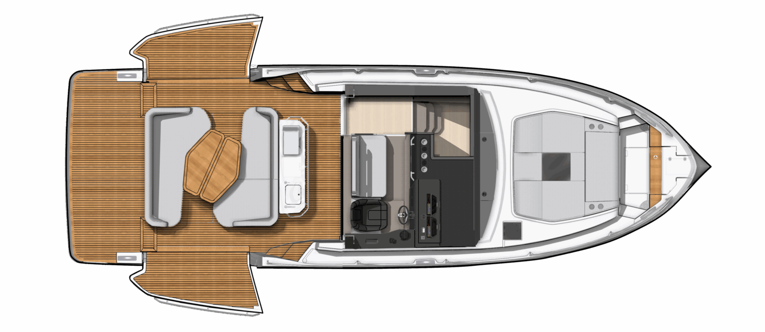 One of the timeless luxuries of this world remains the luxury of choice, and in this spirit BENETEAU offers the new Gran Turismo in different versions – outboard, sterndrive, or coupe. The expansive aft cockpit features a dual L-shaped seating arrangement and an aft-facing wet bar, creating a perfect entertainment command post. A fully equipped galley makes it perfect for weekends aboard or longer touring adventures. The foredeck sunpad with flip-up seating and a sun awning option allow for easy transitions between sun and shade, and movement across the boat is as easy as it is natural.