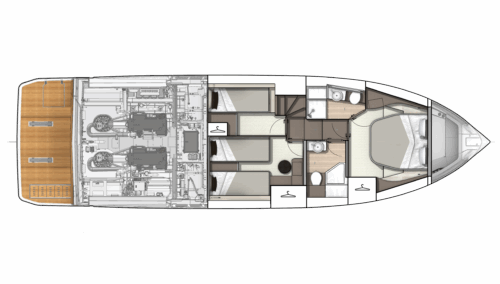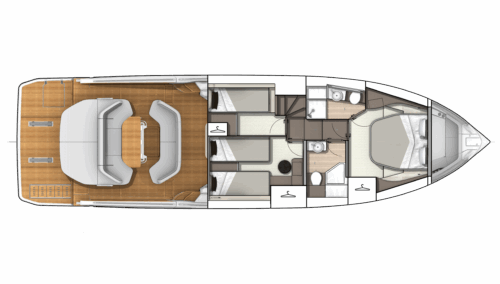 Behind the Gran Turismo 50’s aggressively stylish good looks hide a platform of unique versatility, with a secure layout underway that seamlessly converts to villa-like real estate once the yacht is moored. Expansive relaxation areas are linked by the free-flowing main deck, which organically consolidates itself into a convenient passageway leading to the beautiful three-season helm station. Whatever the mood, whatever the mission – the Gran Turismo 50 is a master at adaptation.