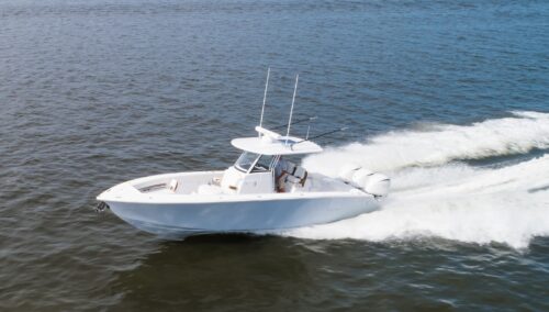 Prepare yourself for a new era of excellence with the all-new 340LS. Our team has committed countless hours to researching and incorporating the latest and greatest advancements in marine technology and usability for this exquisite model. Merging the realms of luxury and sport, this singular vessel epitomizes a seamless blend of aesthetics and functionality. The 340LS inherits the proven hull of our esteemed 34 model while embracing the sleek modern console of a true sport fisher. The helm exemplifies a commitment to efficiency, featuring easily accessible battery access, a 3-piece enclosed glass windshield, and exquisite teak accents. This yacht-inspired design ensures not only an attention-grabbing presence on the water but also comfort for all passengers. Prepare to step up your Jupiter experience with the perfect fusion of all the best features in one seminal model. The Jupiter 340LS is designed to impress, showcasing a contemporary and efficient design that exudes attractiveness and promises to meet high-performance expectations.