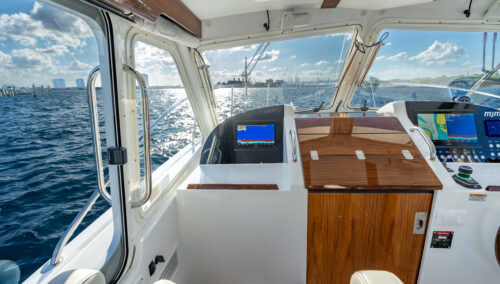 Below deck, the 38RS delivers the comforts that define a true luxury yacht: a full head with shower, ample storage, and fine details like high-gloss teak accents and satin-finished cherry shelves. Whether you’re fishing offshore, hosting at the dock, or slipping away for a day on the water, the versatile MJM 38RS stands apart as a luxury fishing boat built to perform without compromise.