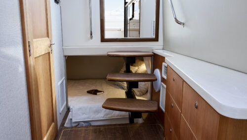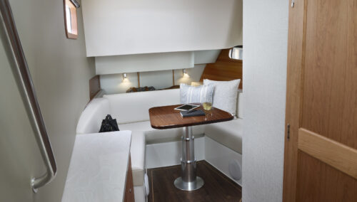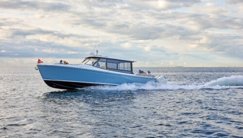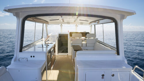 The MJM 47X stands out as a remarkable open-bow day cruiser. Owners rave about its unparalleled handling and smooth ride, dubbing it the “absolute best driving yacht” with effortless fingertip steering. Featuring four distinct social areas and a galley-up layout with the protection of the MJM indoor/outdoor pilothouse, the MJM 47X offers a versatile and efficient design. Below deck, you’ll find a spacious v-berth and a yacht-sized head with a glass-enclosed shower. Whether you’re hosting a gathering or embarking on day voyage, this all-weather/all-condition performance yacht ensures comfort and adventure for you and your loved ones.