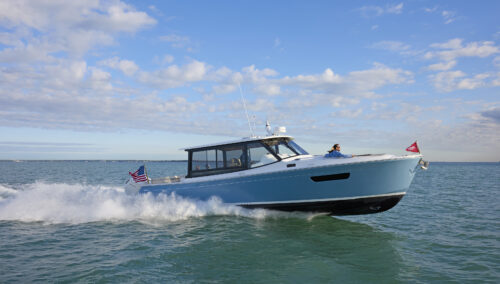 - Twin Mercury 600 hp Verado Outboards or Volvo D6 440 HP w/DPI Inboards