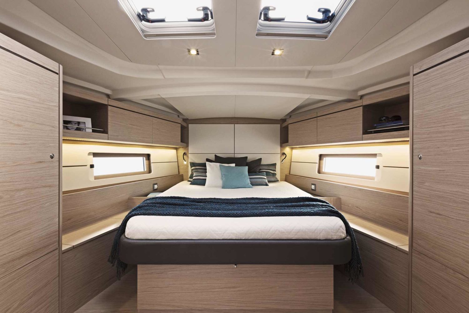 Whether you are with the family, friends, or just a couple, the important thing is that everyone feels at home on board. The shroud-free deck, the number of handrails, and easy access to the swim platform makes movement fluid from stern to bow.