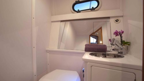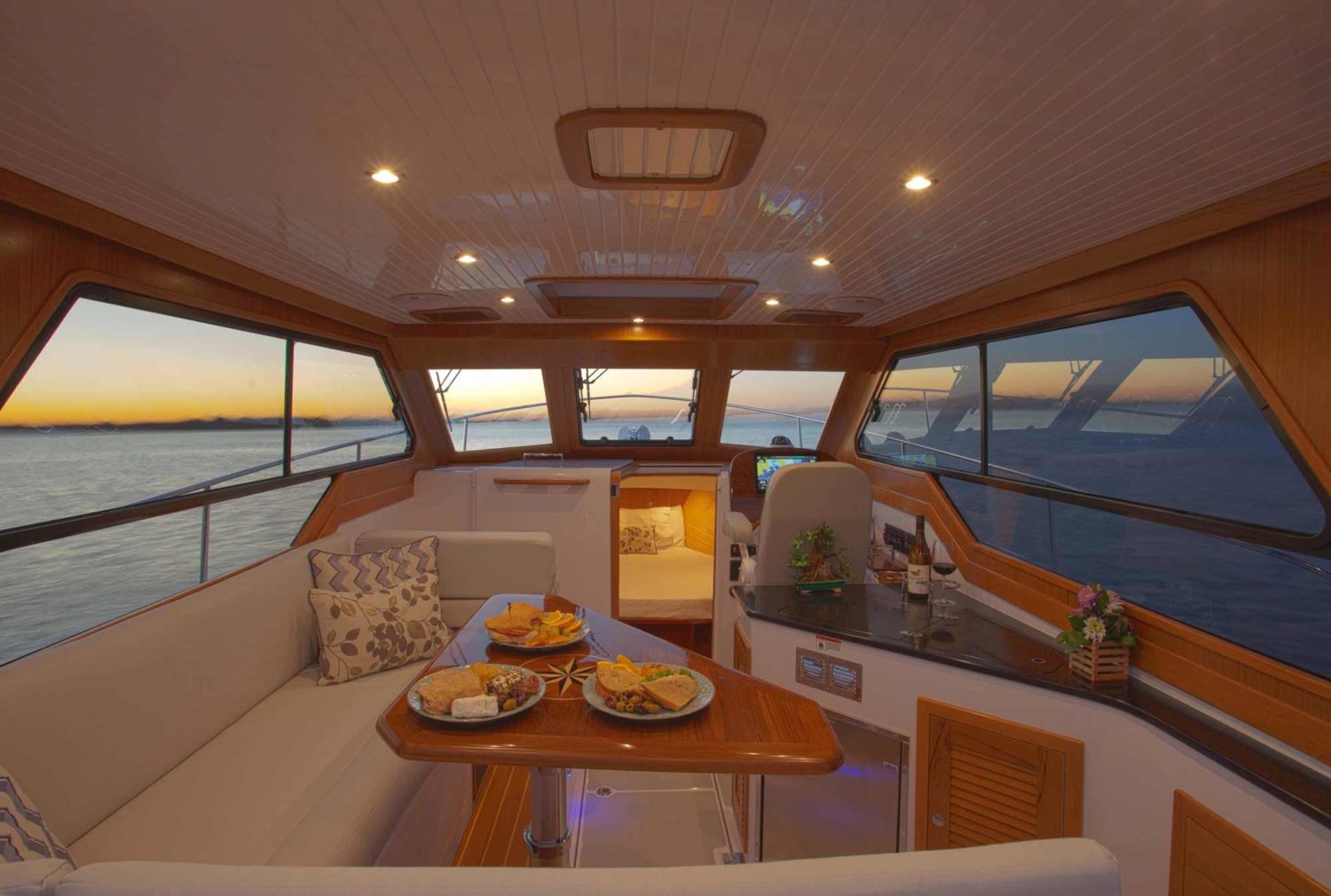 The True North 34 OE is truly a go-anywhere, do-everything boat that is designed for adventurous people who want to experience nature- comfortably. An open-concept interior features a galley-up configuration that connects the main living space to the spacious cockpit all on one level. Serious cooks love the large and well-equipped galley, and everybody loves being up in the center of the action. The True North 34 performs exceptionally well on flat water in fair weather. But its unique ability to handle rough weather and stormy sea conditions is one of the many elements that sets this boat apart. The sharp, plumb bow slices through the waves instead of pounding on top of them when the seas build. The hull’s balanced displacement and flatter aft sections deliver a rock-solid ride in virtually all weather conditions. And since the hull design is inspired by boats that work all year long in all sorts of conditions, we can almost guarantee you will not miss a day on the water (or be stranded in port) when the weather takes a turn for the worst.
