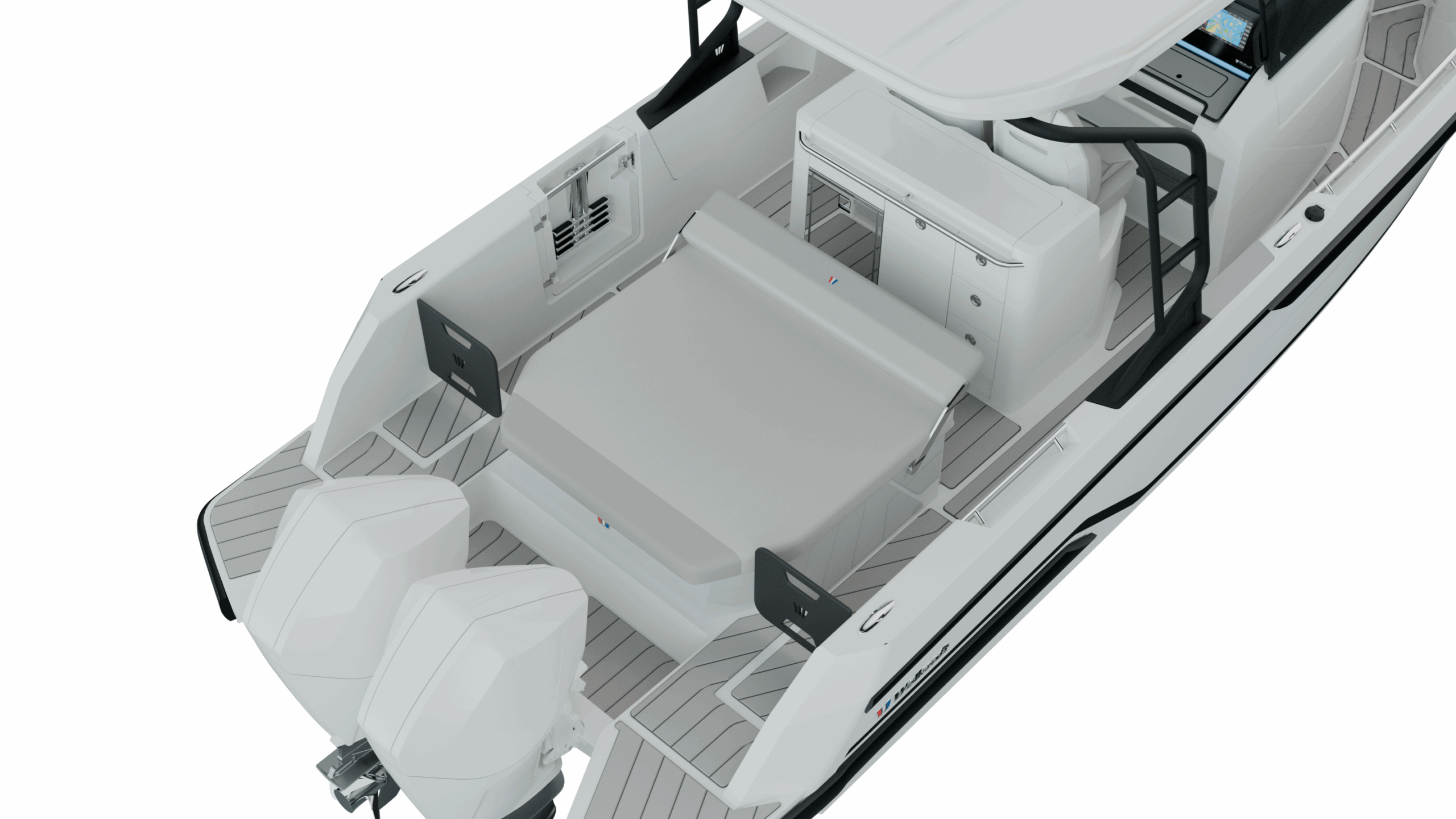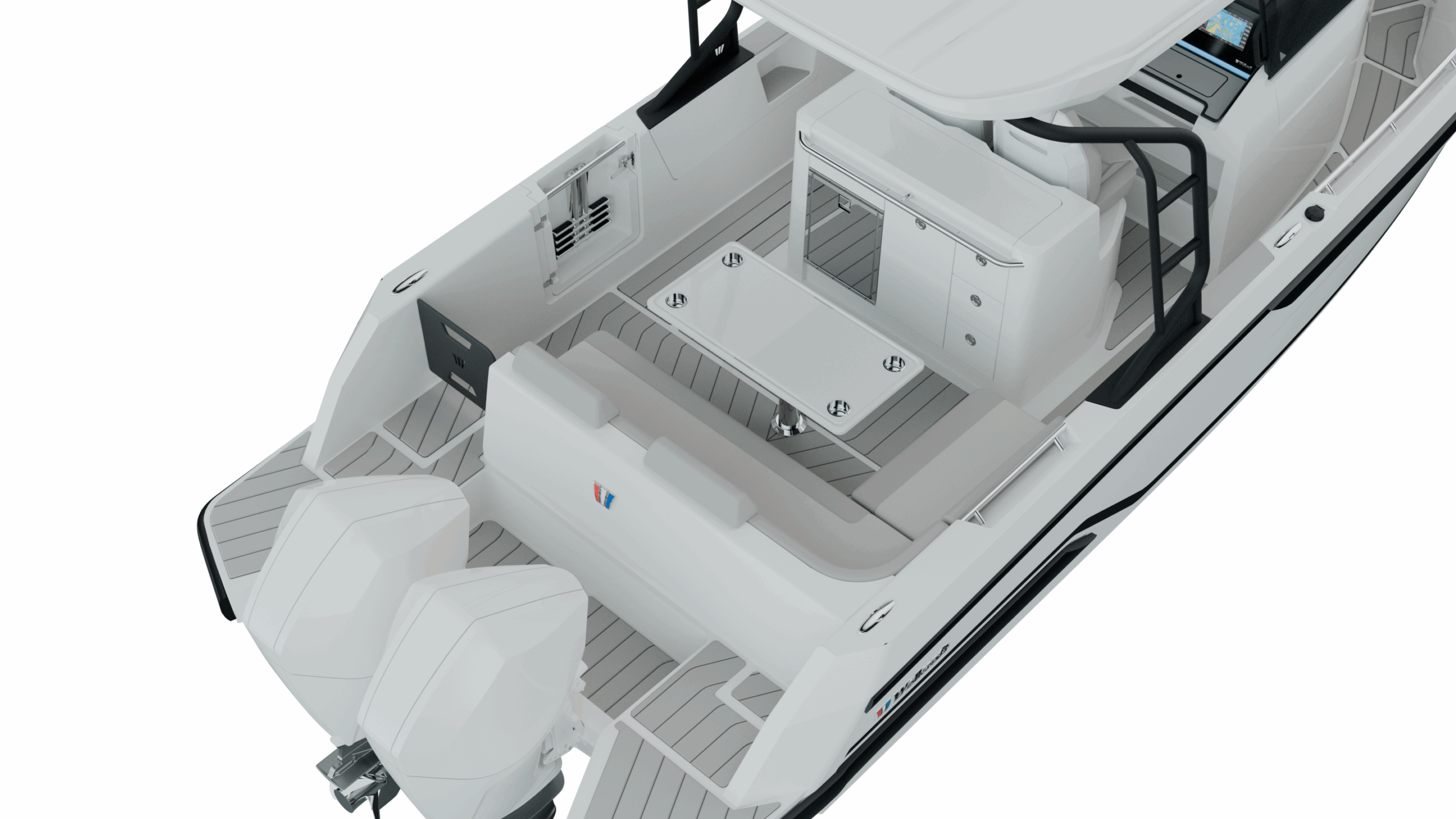 The open-cockpit layout is designed for maximum enjoyment and adaptability, with multiple aft configurations including spacious Lounge seating for up to 13 guests or a relaxing sunpad setup with hidden storage for leisurely days at anchor. High bulwarks, a closed transom, oversized handrails, and a full walk-around deck make movement aboard safe and intuitive in any condition, while the bold silhouette and refined lines balance modern style with functional performance.