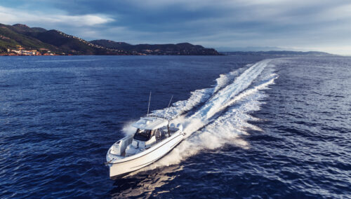 The efficient hull design by Michael Peters delivers excellent seaworthiness at higher speeds, while a fully infused, one-piece hull and structural stringer ensure confident offshore cruising. The standard joystick enhances maneuverability, offering easy handling in all conditions. Innovative optional features, such as the gyro stabilization, provide quiet, reliable stability without any exhaust.