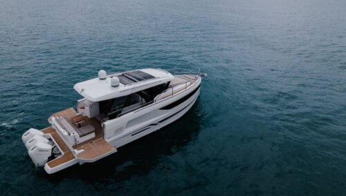 Designed by the famed Garroni Studio in Italy and the highly recognized American naval architect Michael Peters, this strong and sophisticated model boasts an impressive length of 44’. Powered with triple outboard engines totaling over 1,000 hp and equipped with a full beam pilot station, highly responsive controls, and exceptional navigation systems, the Wellcraft 44 Explorer responds to the toughest demands and meets every challenge – to go anywhere, to do anything.